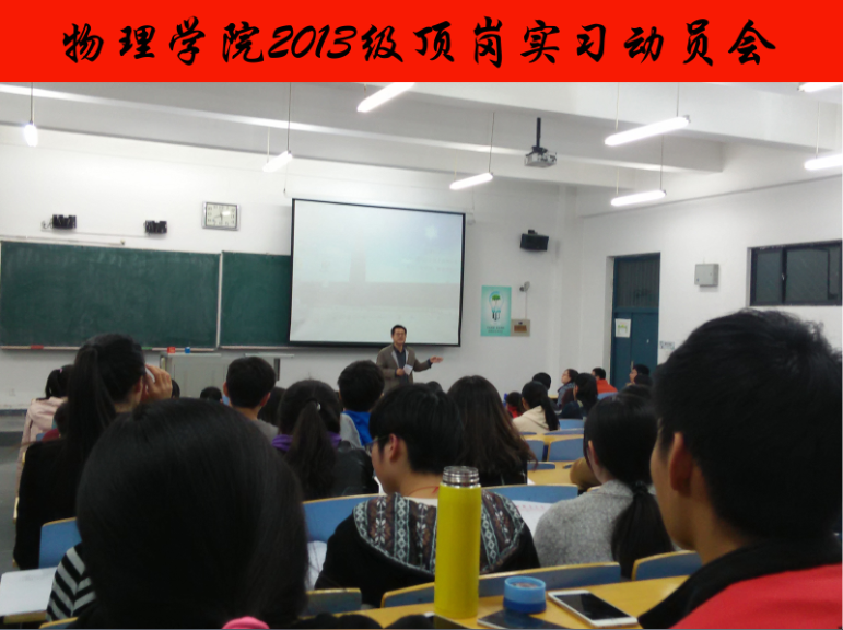 为进一步推动我院顶岗实习活动的开展,使学生全方位了解顶岗实习的过程和意义,2015年11月3日,物理科学与信息工程学院在公教楼A106开展了顶岗实习动员大会。本次大会由2013级辅导员刘翌欣主持,日本a片 党委副书记顾连忠、第十八期顶岗实习驻县教师潘浩及第二十期优秀实习生董亚、徐文博为全体2013级本科师范生作动员。