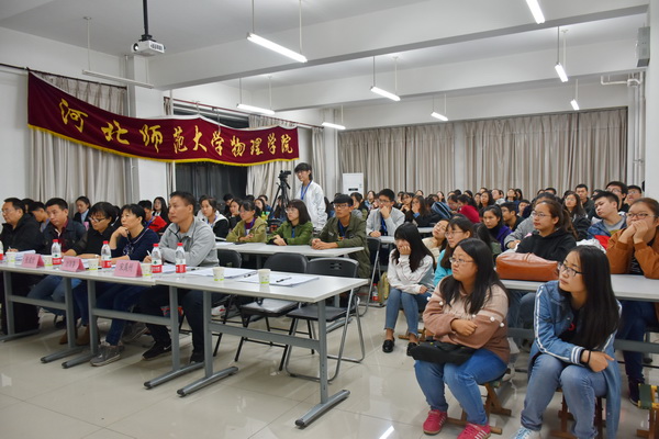 10月17日晚上,我院在理科群2号楼A302教室成功举办了师范生教学技能大赛暨第26期顶岗实习展示活动。比赛特邀正在我校参加“2018年中学物理骨干教师培训班“的石家庄二中刘凤果主任、石家庄二十四中宋禹州主任、石家庄二中实验学校张成欣主任、邯郸一中何文明主任,秦皇岛一中高东明主任等五位一线骨干教师担任评委。比赛吸引了学院近百名学生到场观摩学习。