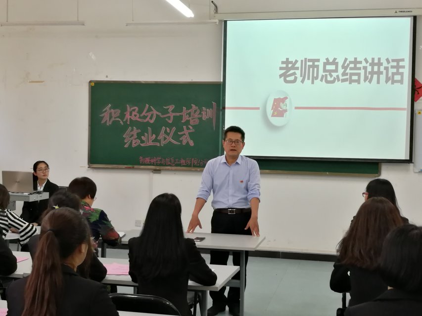 5月10日,我院在理科楼2A308举行入党积极分子培训班结业仪式,党委书记张书敏、副书记顾连忠、辅导员刘翌欣和2017级入党积极分子参加了本次结业仪式。