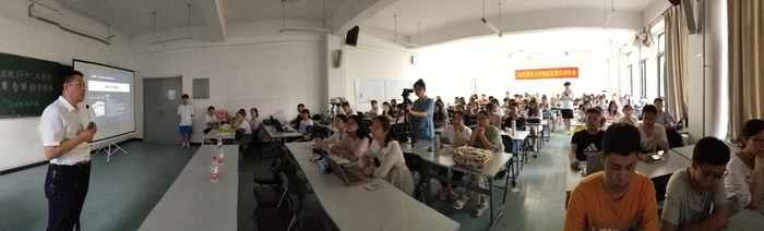 5月10日晚,学院在公教楼A109召开第五届“互联网+”大学生创新创业大赛动员会,顾连忠向同学们介绍了本次比赛情况,鼓励大家积极参赛,科创部部长孙东云同学向大家详细解读了本次比赛的流程和参赛准备工作,大一、大二400余名同学参加了动员会。5月12日中午,辅导员刘翌欣召开班会,对2017级的同学进行了再次动员。