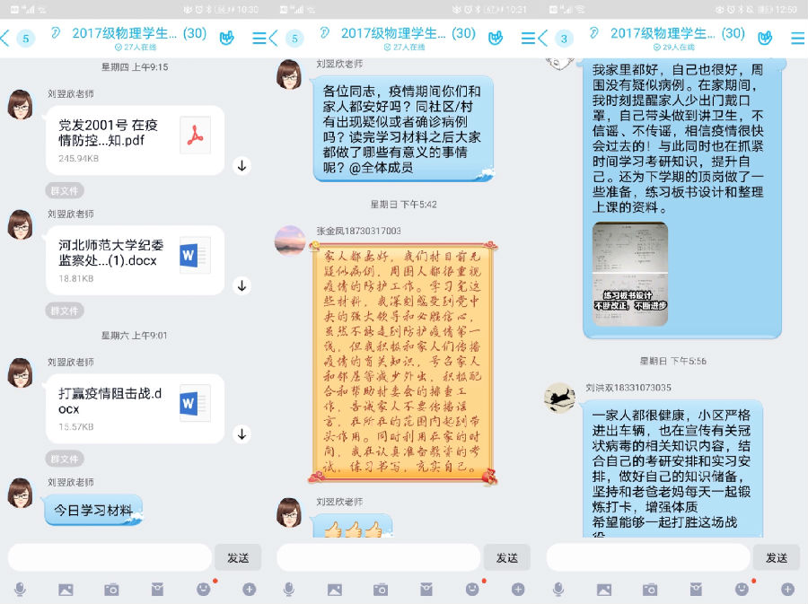 在这场阻击新型冠状病毒感染肺炎疫情的斗争中,2017级学生支部党员贯彻落实习近平总书记关于疫情防控工作的重要指示精神,积极响应学院号召,在防疫关键时刻挺身而出,用自己的行动和爱心守护着身边同学和家乡群众的安全,为打赢这场疫情防控阻击战凝聚力量!