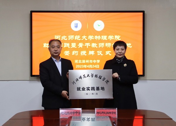 为进一步开拓就业渠道,深化校企合作,推进我院2023届毕业生更加充分、更高质量就业,4月25日下午,学院党委书记田秀梅带队,赴深州中学开展访企拓岗交流、就业实践基地签约授牌活动。