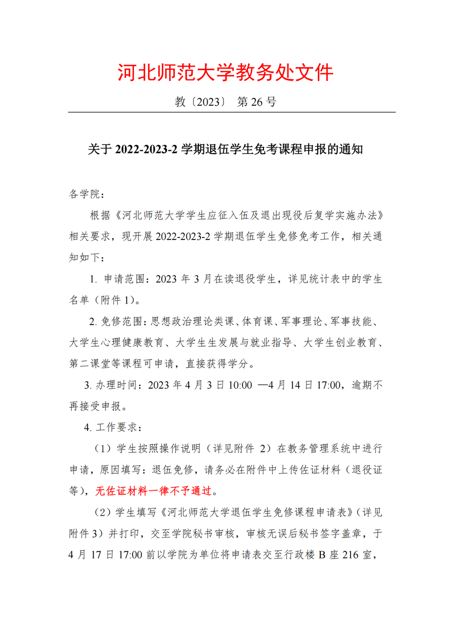 关于 2022-2023-2 学期退伍学生免考课程申报的通知