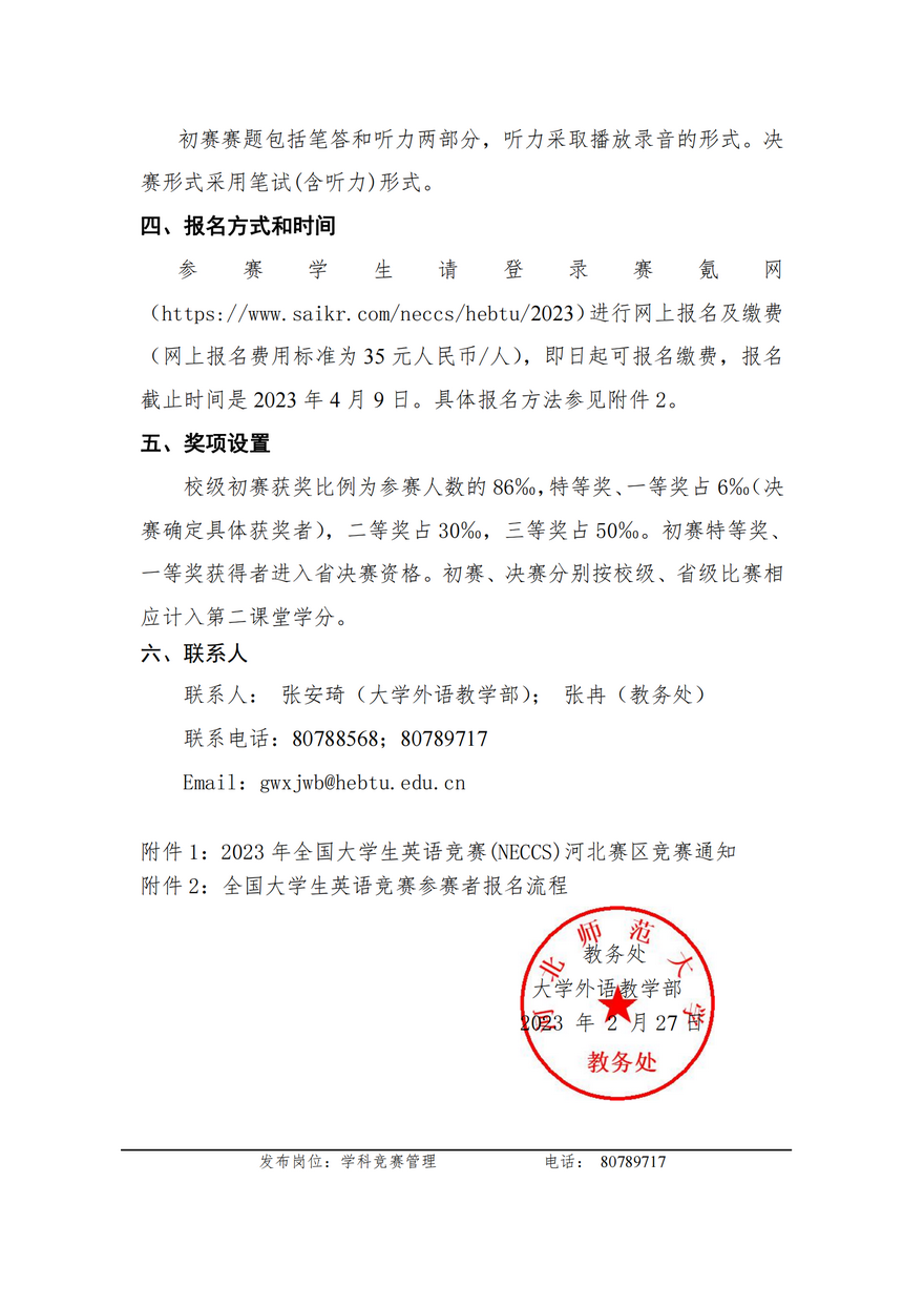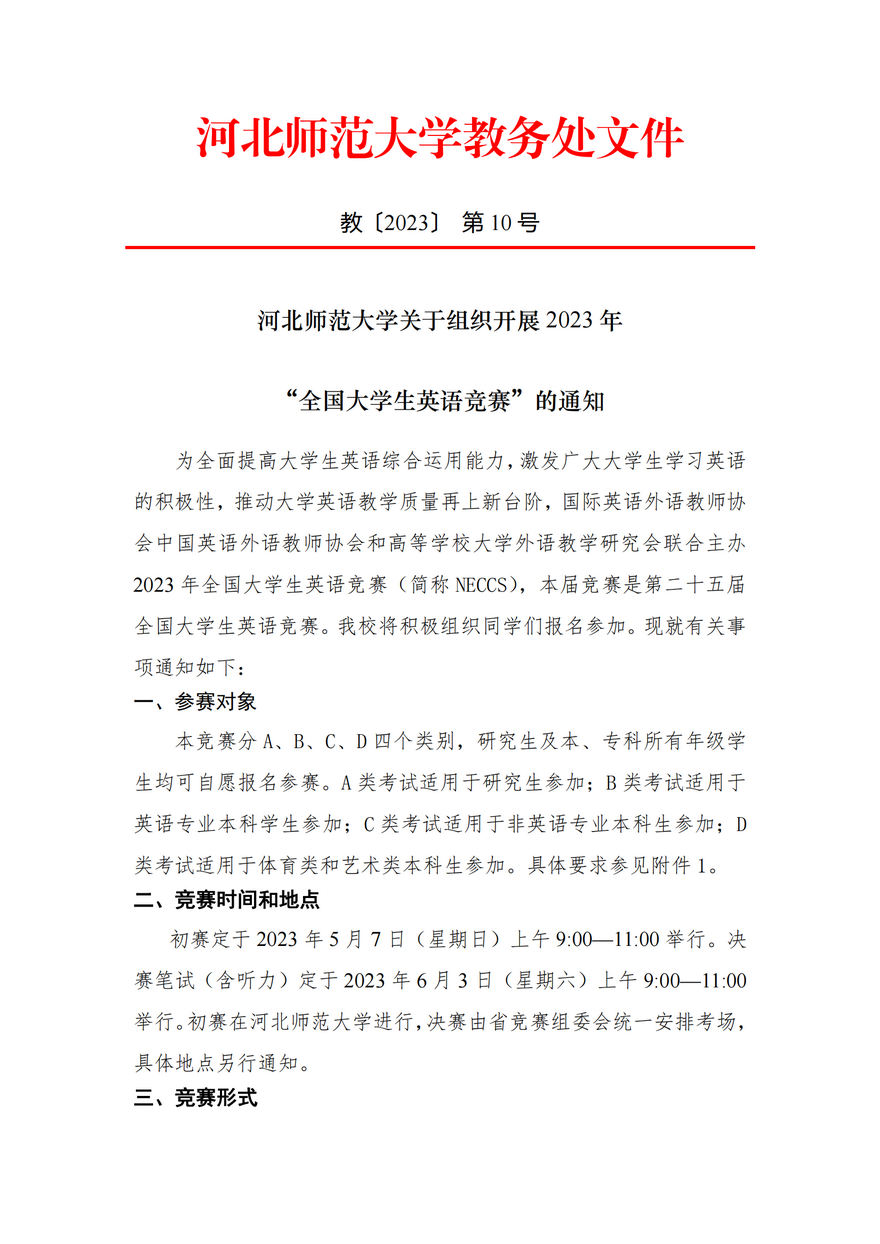 河北师范大学关于组织开展 2023 年“全国大学生英语竞赛”的通知