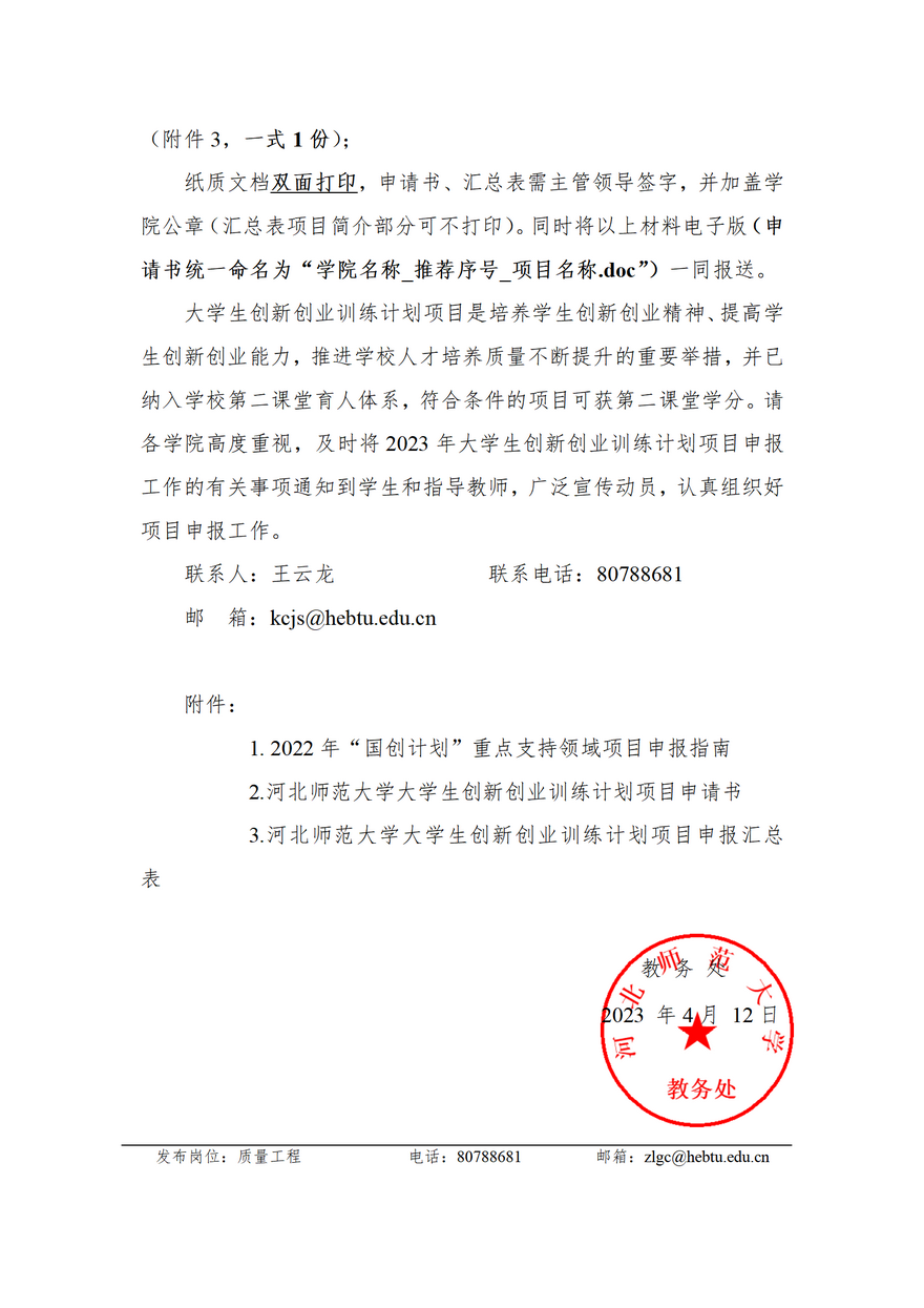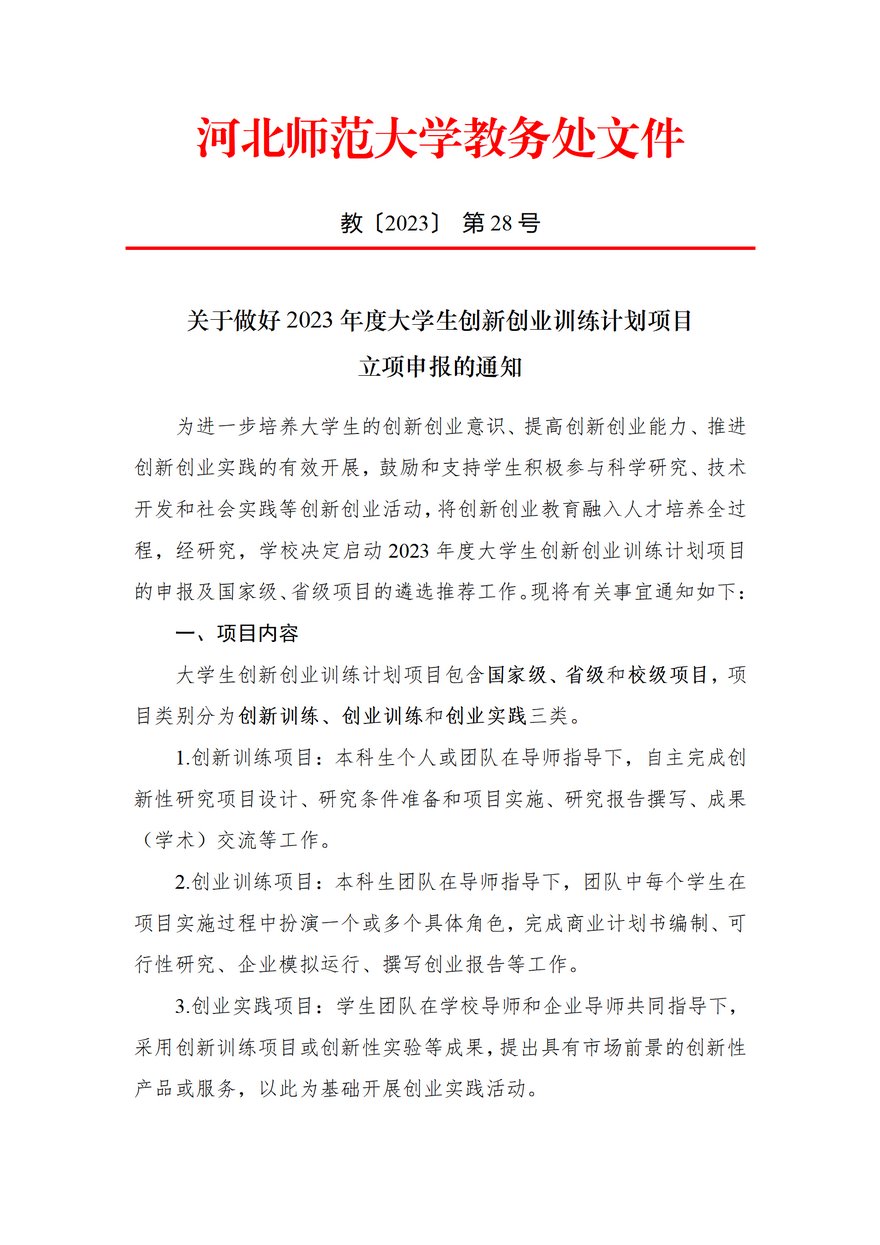 关于做好2023年度大学生创新创业训练计划项目立项申报的通知