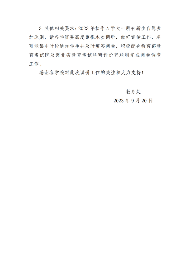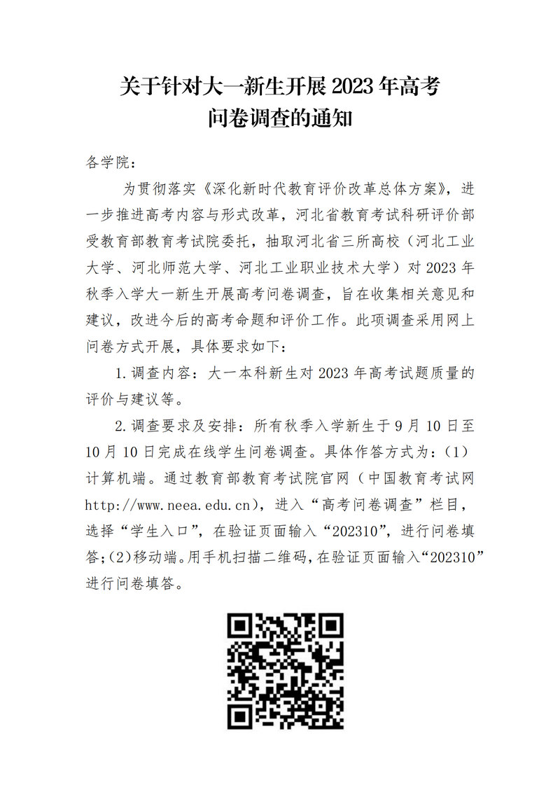 关于针对大一新生开展2023年高考问卷调查的通知