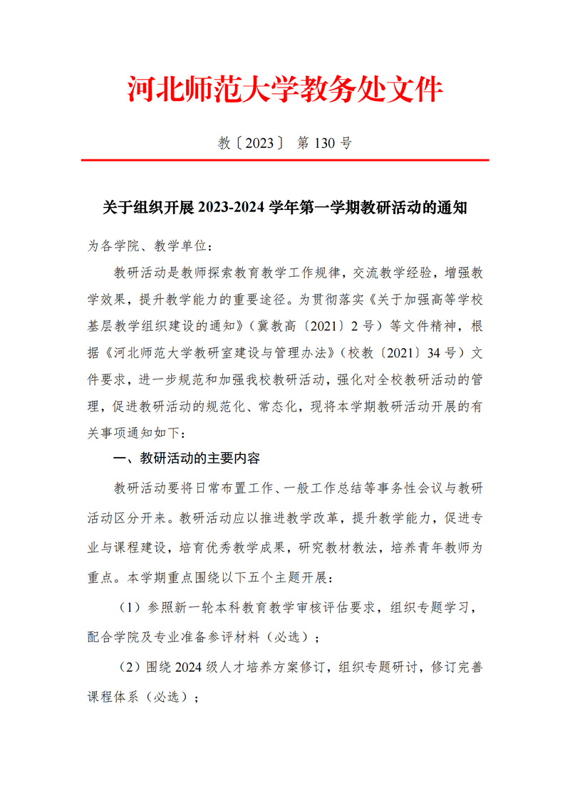 关于组织开展2023-2024学年第一学期教研活动的通知