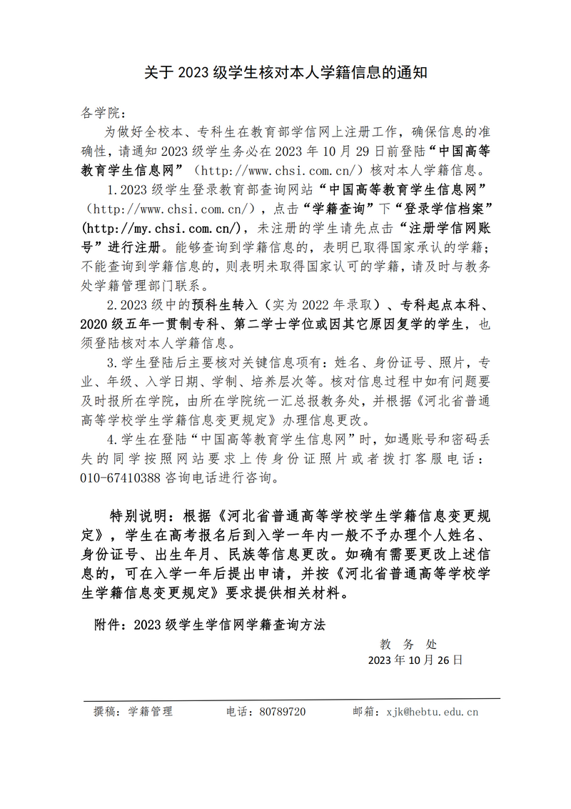 关于2023级学生核对本人学籍信息的通知 (10月26日)