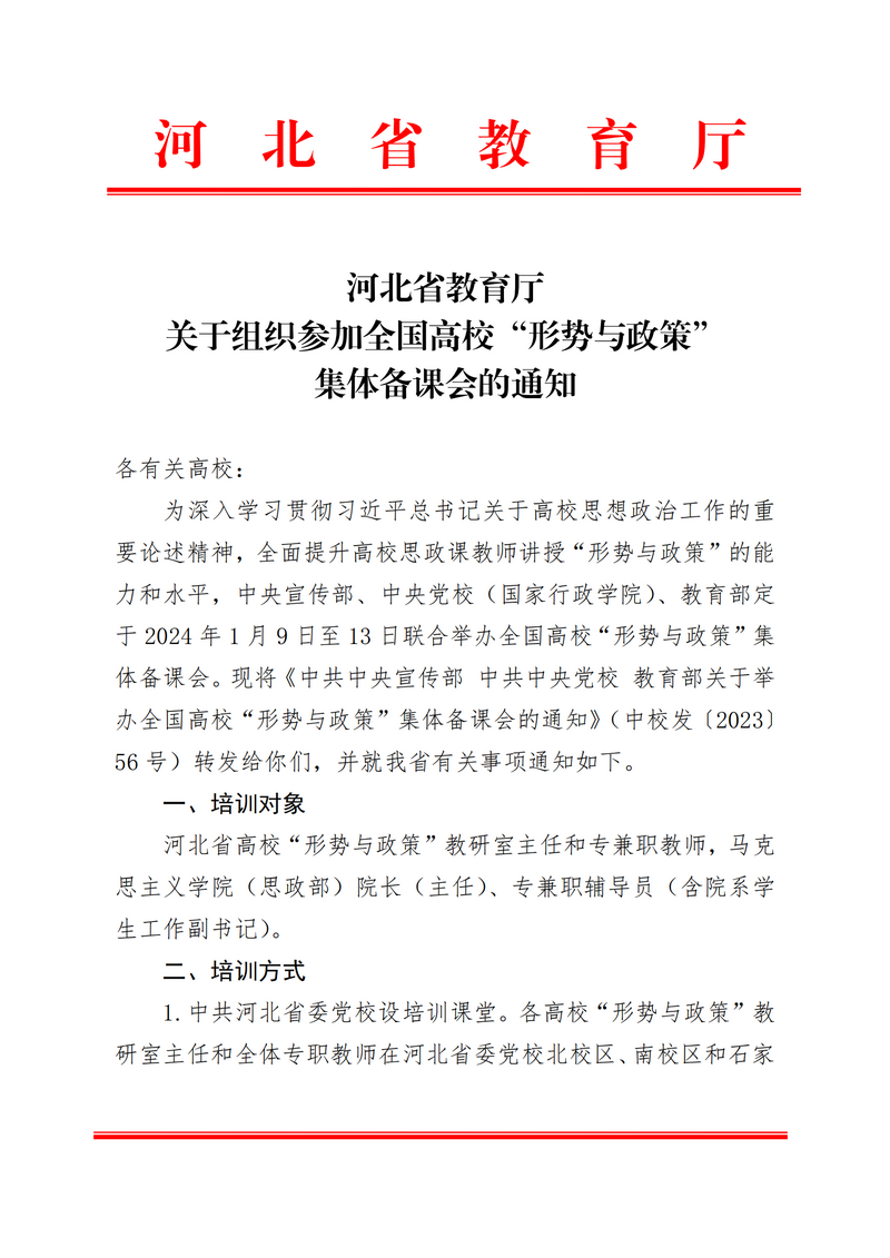 关于组织参加全国高校“形势与政策”集体备课会的通知