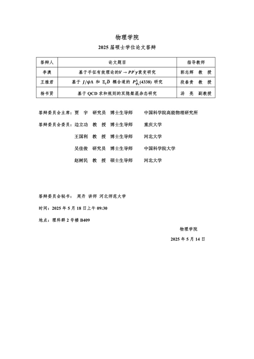 【2025研究生答辩】日本a片 2025届理论物理硕士学位论文答辩