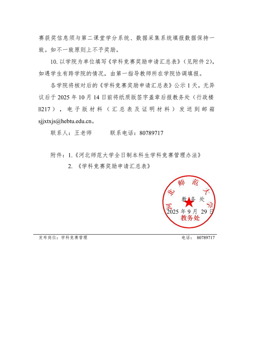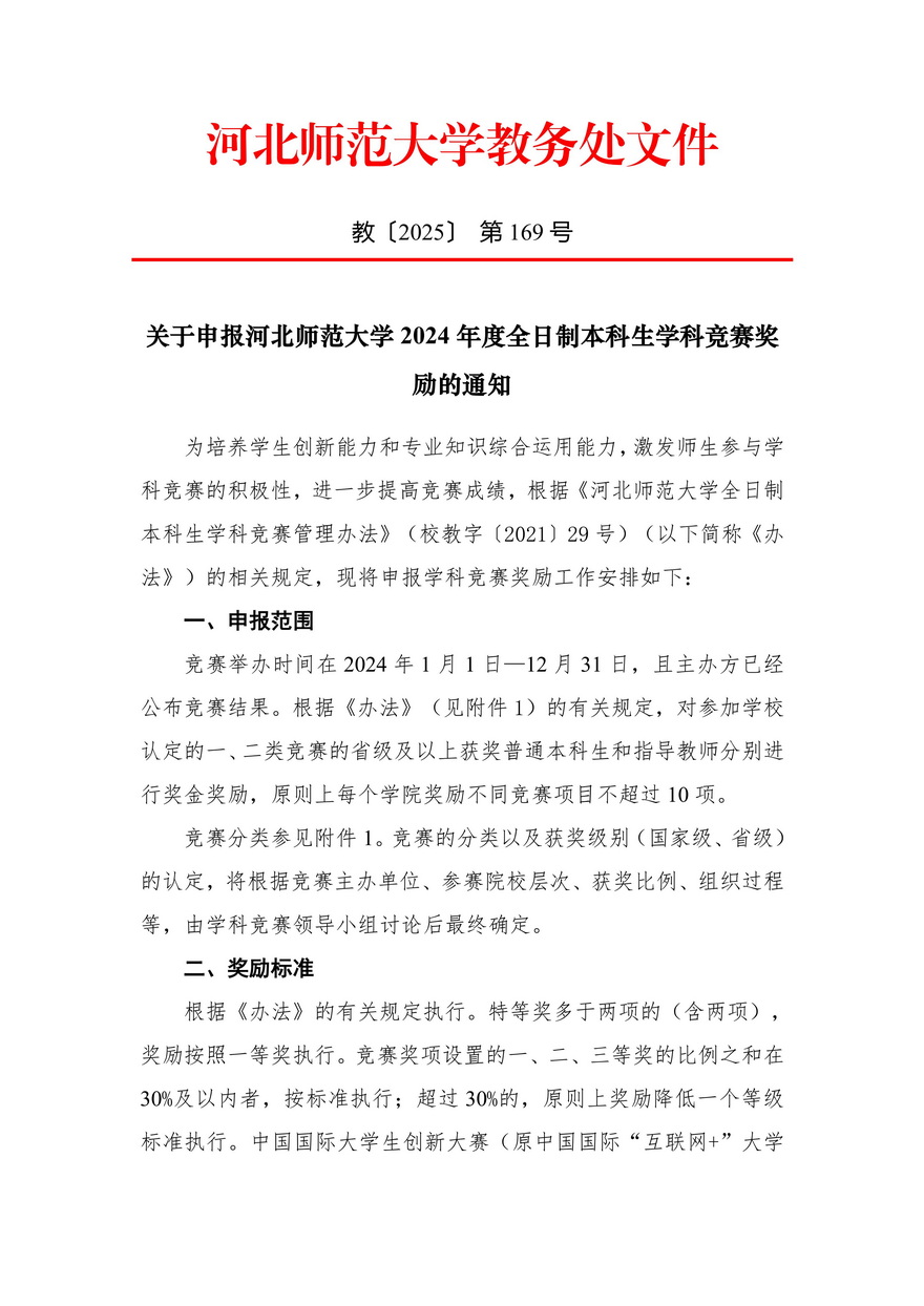 关于申报河北师范大学2024年全日制本科生学科竞赛奖励的通知